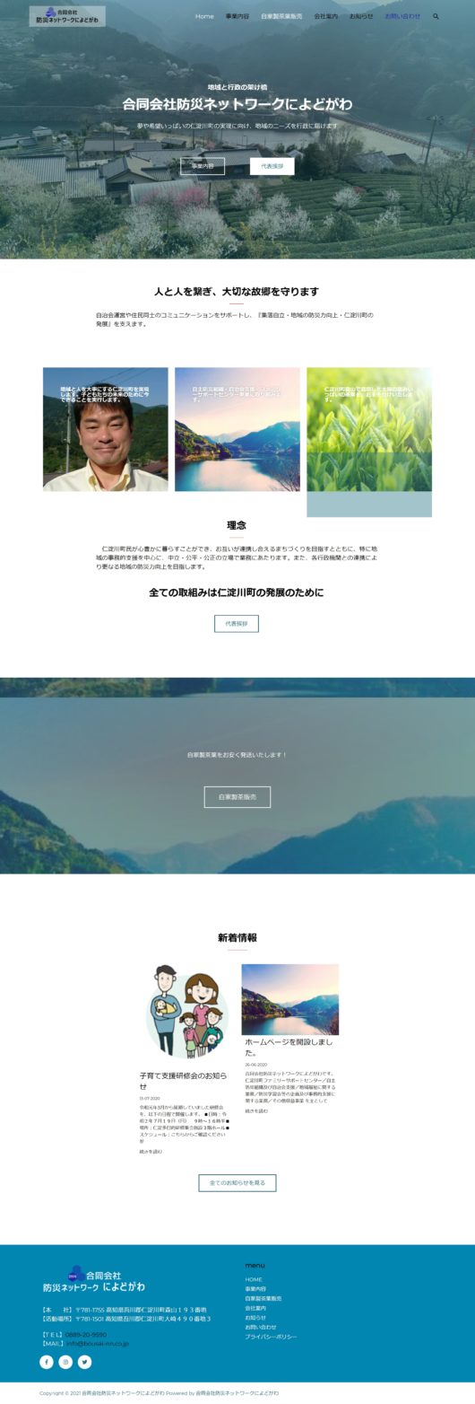 ヒアリングでお聞きした仁淀川町への熱い思いを表現し、自社の事業内容や魅力を伝えるコーポレートサイトとなっています。