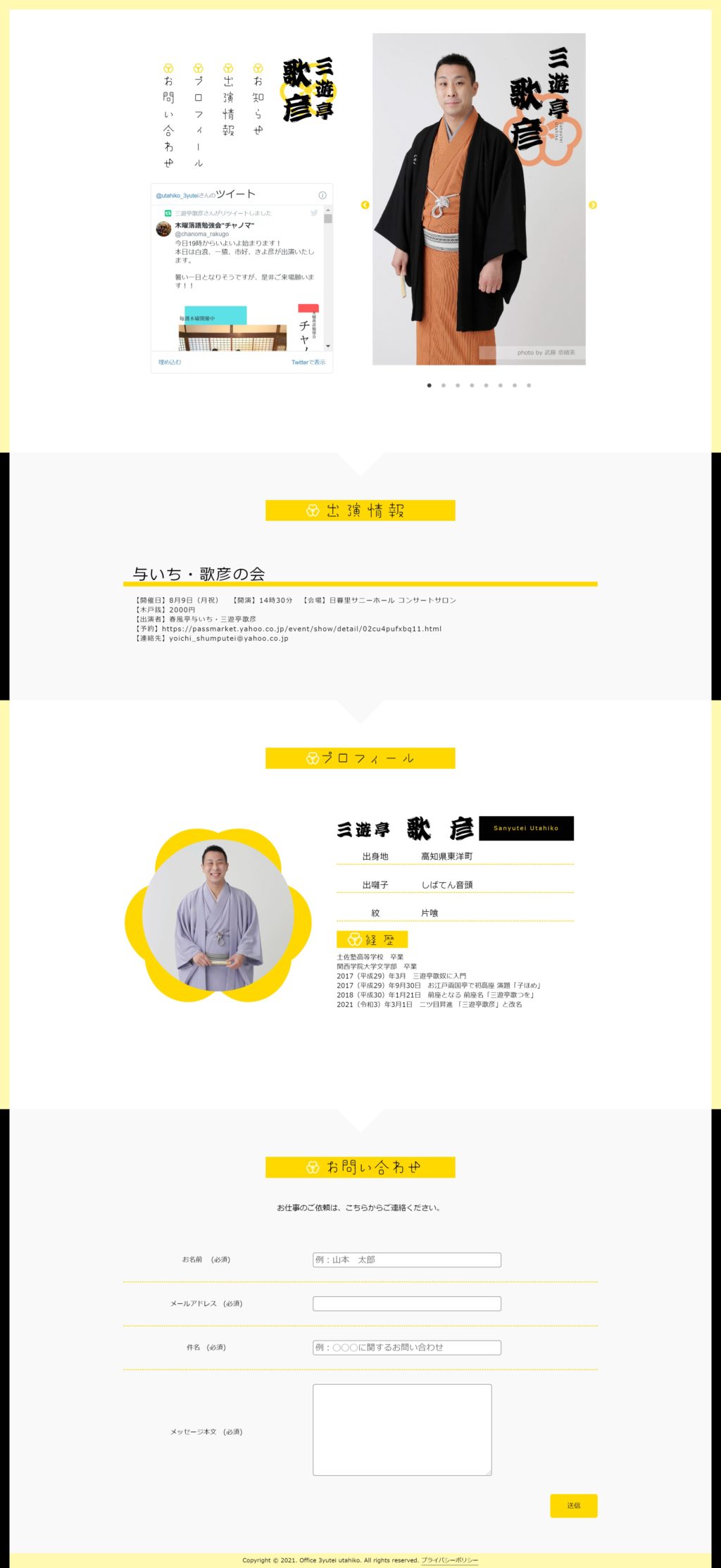 明るく元気を与える落語家さんのイメージで、楽しいサイトデザインと分かりやすさを重視し、構築しました。