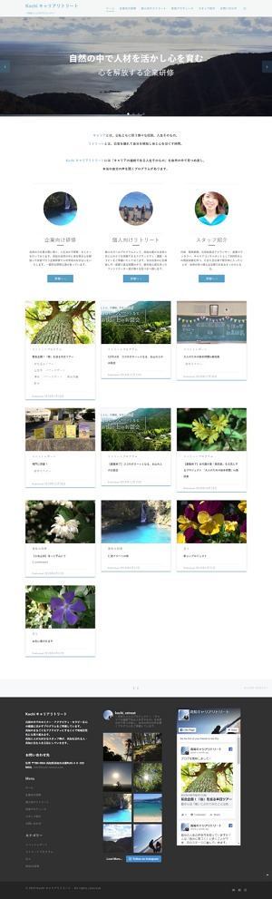 ホームページ制作事例 自然の力を最大限に借り、人を活かす研修・セミナーやリトリートプログラムを展開されている『高知キャリアリトリート』様。 デザイン工程ありのスタンダードプランで作成し、『緑や海・高知の自然をベースにした…
